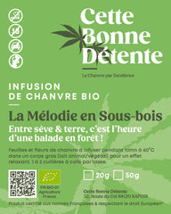Issues de nos cultures Bio en plein cœur du massif Vosgien, ces petites fleurs et feuilles apporterons à votre infusion du soir une amertume soulignée par des notes mélangées de résines et de sève que l'on pourra équilibrer avec un lait d'amande ou de coco. Selon que l'instant se présente gourmand ou 100% chanvre...