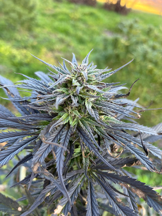 Ces Fleurs diffèrent de nos Grands Crus par leurs singularités aromatiques typiques liées aux pigments qui donnent cette couleur pourpre ... Ces phénotypes sont souvent associés aux régions froides car les anthocyanes apportent une coloration plus sombre favorisant la captation de la lumière du soleil pendant la phase de floraison ! Cultivées en Bio dans les mêmes conditions que nos autres plantes, c'est la Nature qui a choisie ces exceptions ! Vous êtes un passionné de Purple ? Bienvenue dans la cave terpénique de nos Millésimes ...